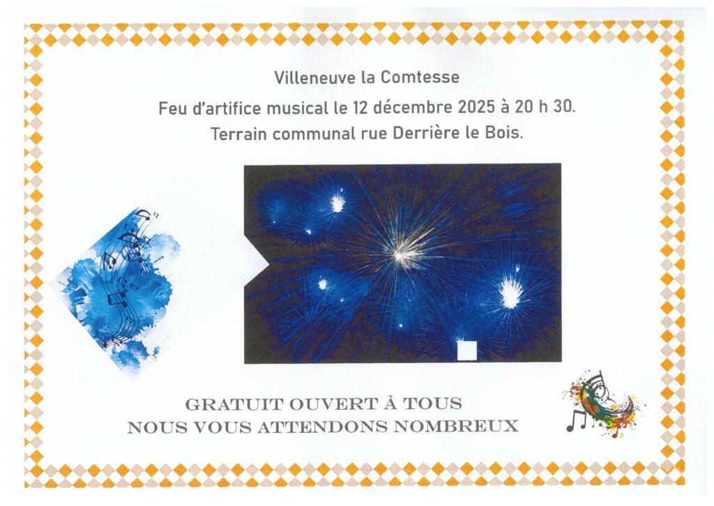 feu d’artifice musical a villeneuve la comtesse le 12 décembre 2025 20h30 Facebook Twitter LinkedIn Email Imprimer